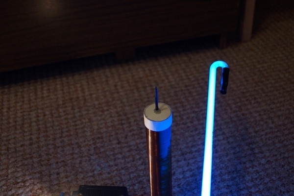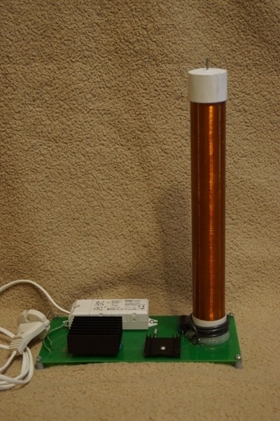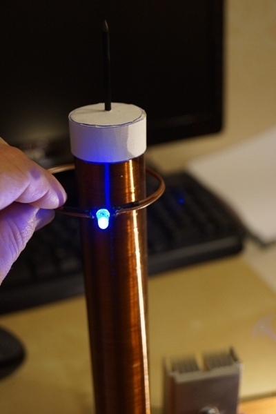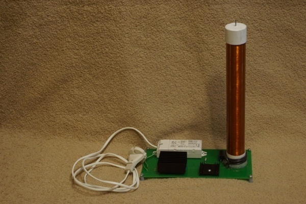 Катушка Тесла начального уровня, это относительно небольшая катушка, она подойдет для экспериментов по беспроводной передаче энергии в ходе которых прямо в руках экспериментатора смогут засветиться лампы. Для опытов годятся энергосберегающие лампы, лампы дневного света и неоновые лампы. При приближении пальца или металлического предмета к заостренному наконечнику наверху катушки испускается небольшой электрический разряд.